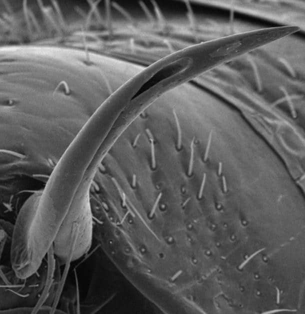 Les glandes salivaires, composées d’une glande principale (en forme de poire) et d’une glande accessoire tubulaire sont en réalité situées dans le thorax mais sont reliées par leurs longs canaux jusqu’au rostre.